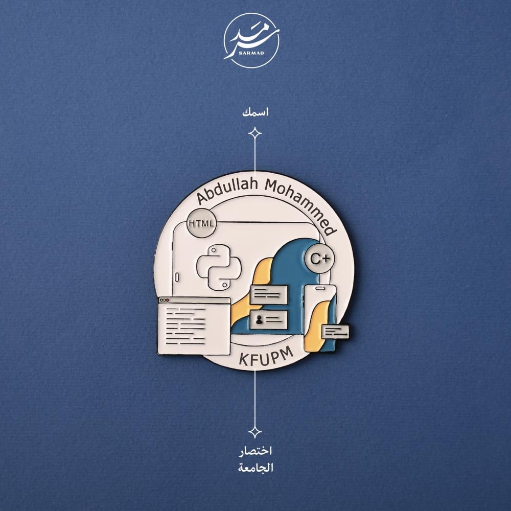 إمكانية التخصيص: إضافة اسمك والجامعة لجعل البروش فريداً وشخصياً.